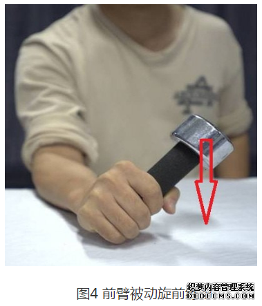 如图,动作和旋前练习类似,方向正好相反,其余要求完全一致。