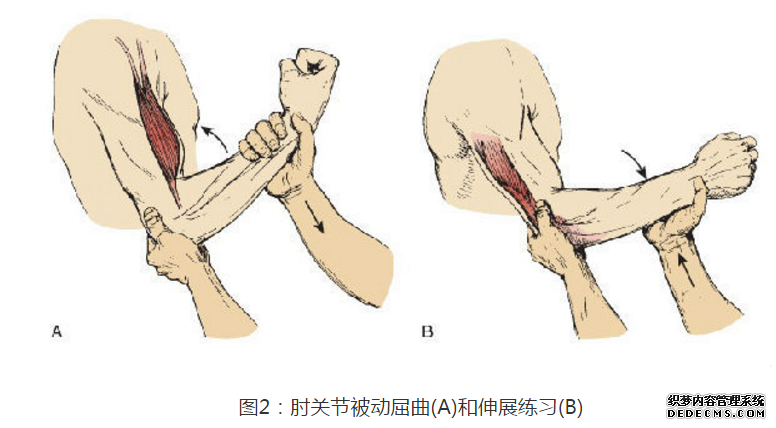 图2:肘关节被动屈曲(A)和伸展练习(B)
