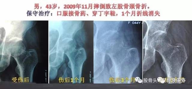 3、"拖"字策略病人拒绝手术或不耐手术风险的,一个字:"拖"。股骨颈周围有坚韧的关节囊包绕,卧床休养一段时间,骨折端锐利的骨茬变钝的时候,疼痛就会有所缓解,股骨头坏死程度再重也不会癌变;如果病人因种种原因不能手术治疗,那就只好拄着双拐拖一拖了,瘸就瘸一点吧,只要不痛或疼痛能忍受,对于某些病人而言既是无奈的选择也是一个不错的结局,毕竟手术换关节的目的也是缓解病人的疼痛。