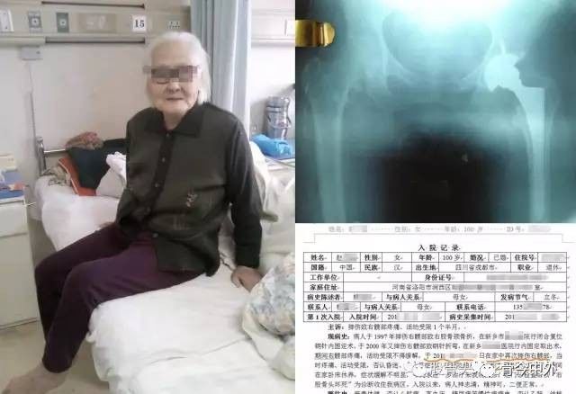 图18?百岁老人,左髋多次摔伤最终左股骨头坏死,行全髋关节置换术