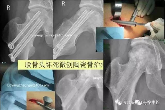 2、一旦股骨头出现坏死,可在取出空心钉的同时行微创病灶清除植骨术;