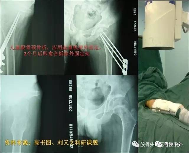 儿童股骨颈骨折必须保头治疗,无论难度如何。石膏外固定因护理困难、关节僵硬发生率高,渐渐已少用。