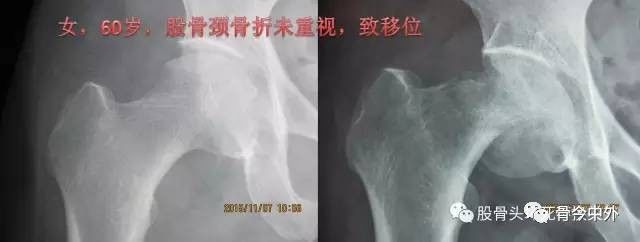 图4 ?女,60岁,股骨颈骨折未重视致移位