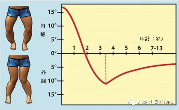但是一旦" O型腿"变直,随着孩子生长又会慢慢出现" X型腿",而且" X型腿"会逐渐加重,大约在 3~4岁 时最明显,之后随着孩子生长发育又会慢慢变直,在7 岁左右时下肢的发育趋于稳定,这一过程称为"生理性膝外翻"。但下肢发育稳定后腿也不是完全直的,而是有平均6° 的外翻,这是正常的,无论成人与儿童都有,通常女性比男性外翻要大一些。