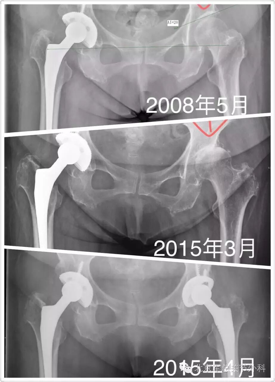 第一个病人,从关节间隙完全正常到间隙消失仅用了7年,关节软骨就会损失殆尽,关节间隙完全消失,关节持续疼痛活动受限,最终只能靠人工关节来消除疼痛、改善功能了。