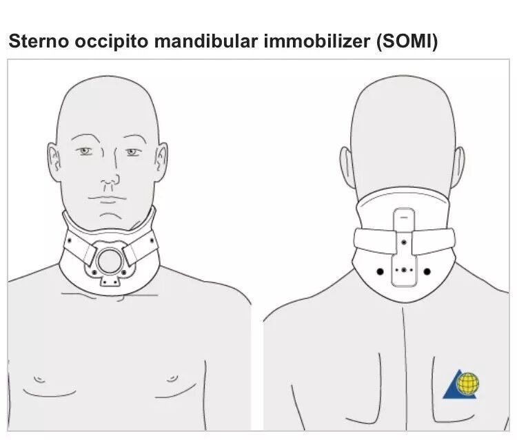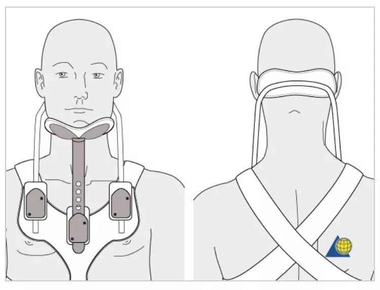 胸枕颌支具(SOMI)/费城颈托,能够对下颈椎提供稳定的机械支撑。用于稳定性颈椎骨折的保守治疗。