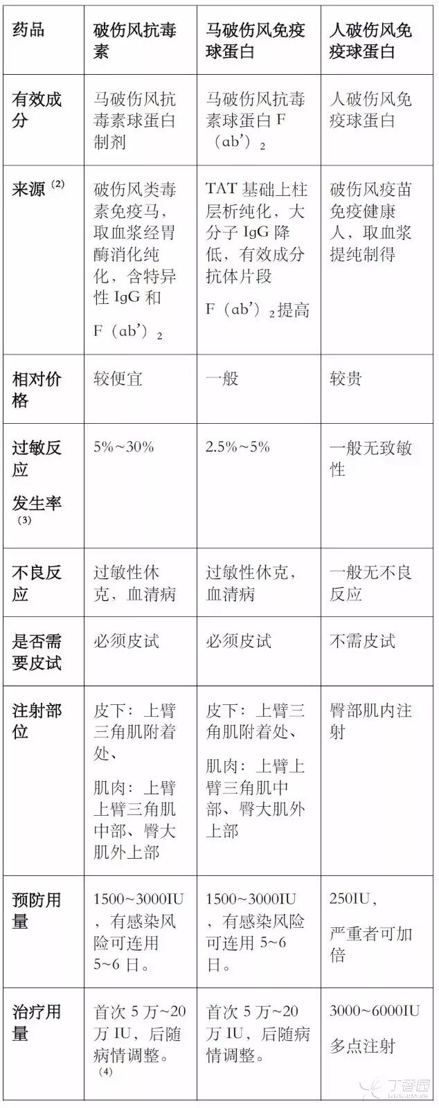 1. 接种史不详的、未接种破伤风疫苗免疫的,除使用 TAT/马破伤风免疫球蛋白/人破伤风免疫球蛋白外,应用时接种破伤风类毒素以获得持久免疫力。