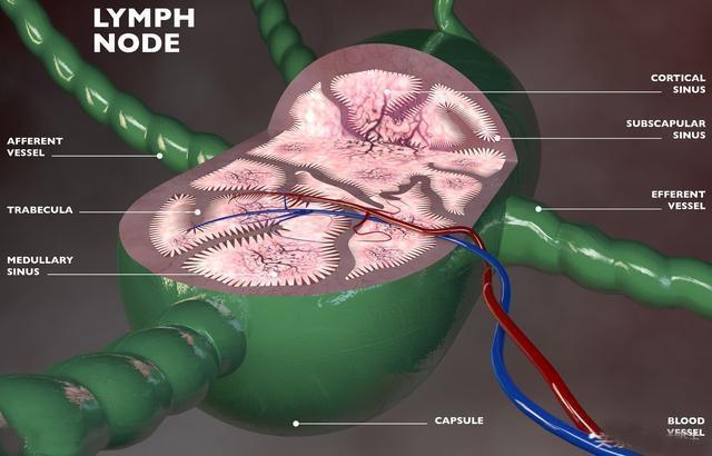 淋巴结是一种遍布全身的淋巴组织,浅表淋巴结集中的区域在颈部、腋下和腹股沟。深部淋巴结包括纵隔淋巴结,腹腔淋巴结,腹膜后淋巴结。正常人浅表淋巴结很小,直径多在0.5厘米以内,表面光滑、柔软,与周围组织无粘连,亦无压痛。