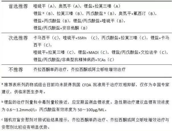 表2:双相障碍II型抑郁发作急性期药物治疗推荐建议