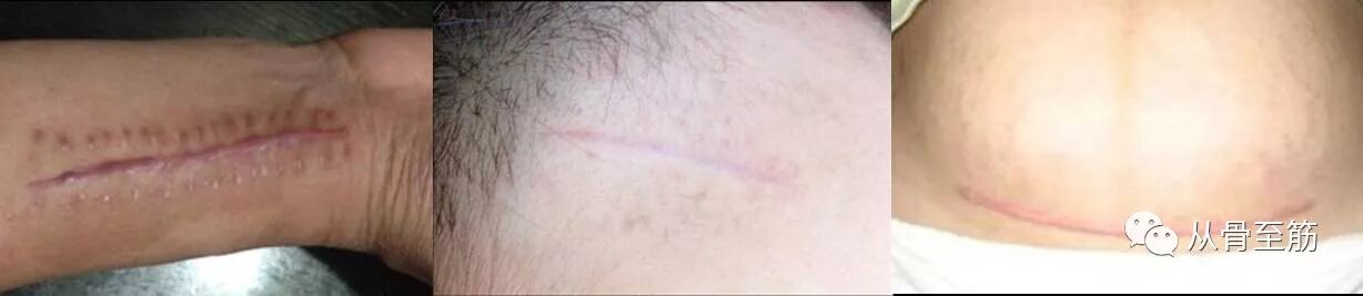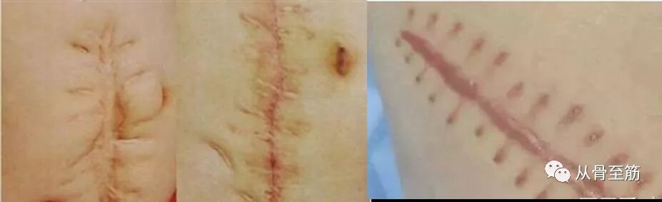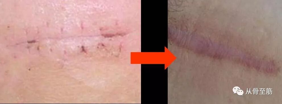 ? ? ?有的人拆线时切口瘢痕就像一条线,可是过了一段时间却越来越宽了,很是郁闷。为什么这会样呢?这是因为拆线后局部仍有一定的张力,而切口瘢痕抗张力较差,如果张力一直较高,会逐渐被拉宽。疤痕也就由原来的一条线逐渐变宽,很不雅观。