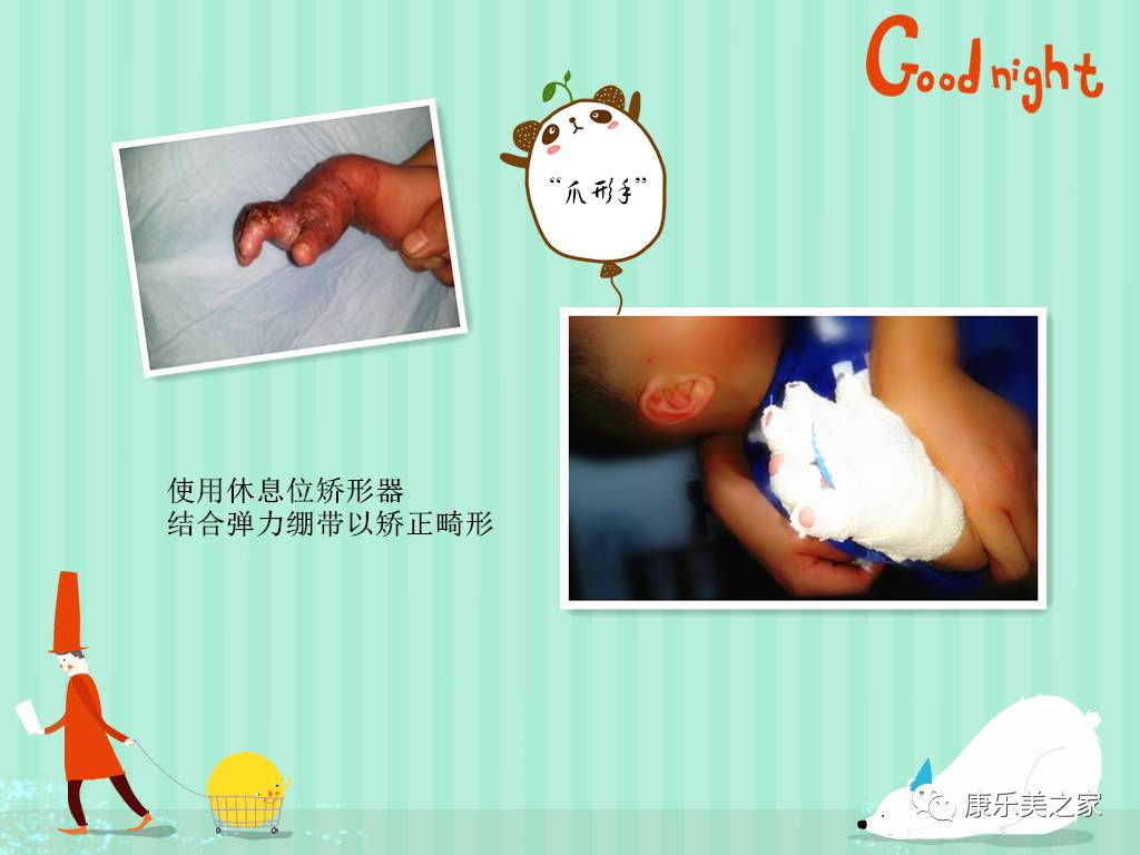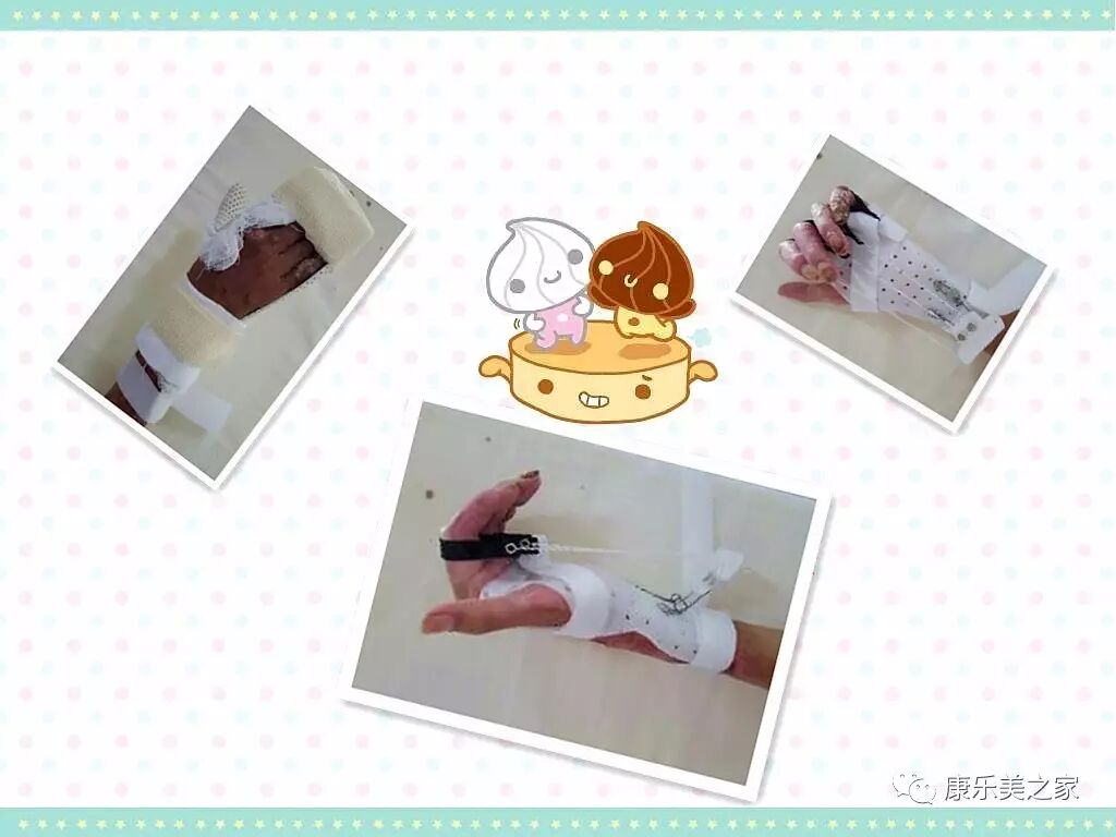 可塑性夹板,支具,矫形器:关节部位外固定,对抗瘢痕挛缩。要在专业康复师指导下使用。