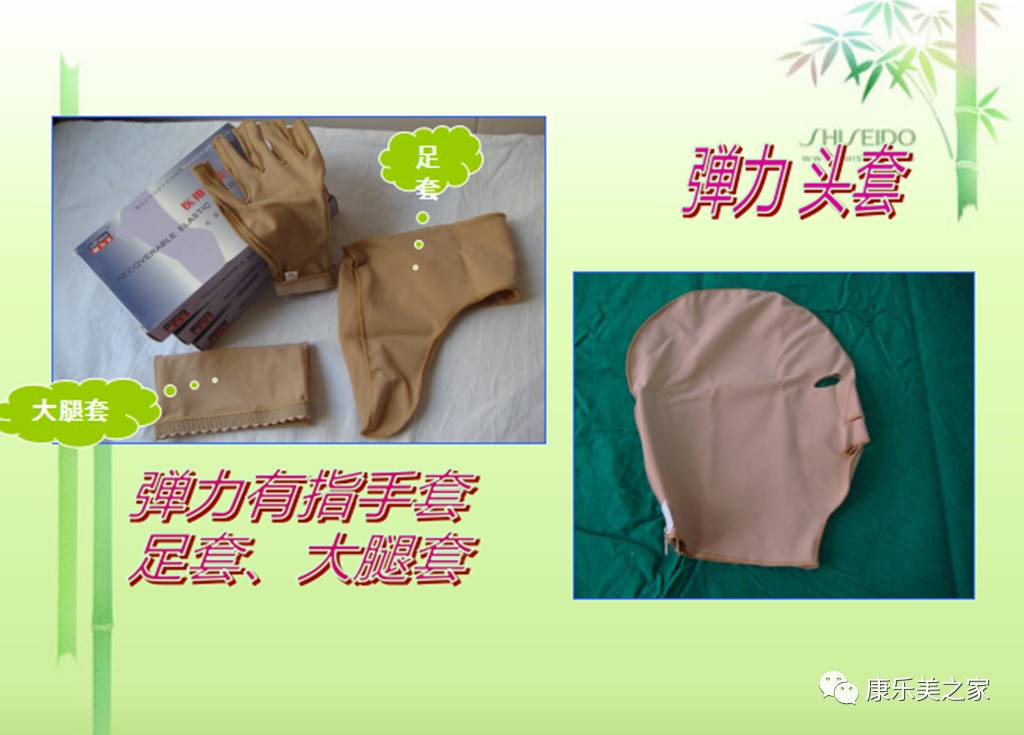 瘢痕组织是一种循环不良、结构不正常和神经分布错乱的假性组织。瘢痕后结缔组织过度增生,可导致局部充血瘢痕组织高出皮肤,并与周围组织粘连,产生奇痒,刺激等症状。为了预防瘢痕增生高出皮肤表面,影响患者的外观和功能,给患者带来肉体和精神双重痛苦,我们不仅强调早期功能锻炼和药物按摩,同时也要强调早期进行弹性压迫,也称为压力治疗。即最基本的抗疤治疗三部曲:"药物按摩—功能锻炼—压力治疗"。