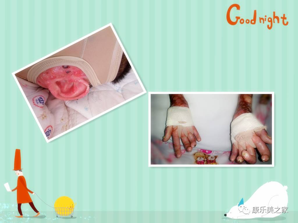 压力治疗,是一个非常艰辛而漫长的过程。常会引起患者疼痛,紧迫感,闷热感,还会不断起水泡,破溃,甚至淤血,尤其炎热的夏季,这种不舒适感更加显著。很容易导致患者此项治疗半途而废,患儿家属也常因心疼孩子而选择放弃。所以,我们一定要再三告知患者及家属这项治疗的必要性和重要性,树立其战胜困难的信心和勇气。教会患者及家属正确使用压力疗法,不仅达到应有的对抗瘢痕增生而致功能障碍的康复效果,还可以减少一些不必要的损伤和痛苦。