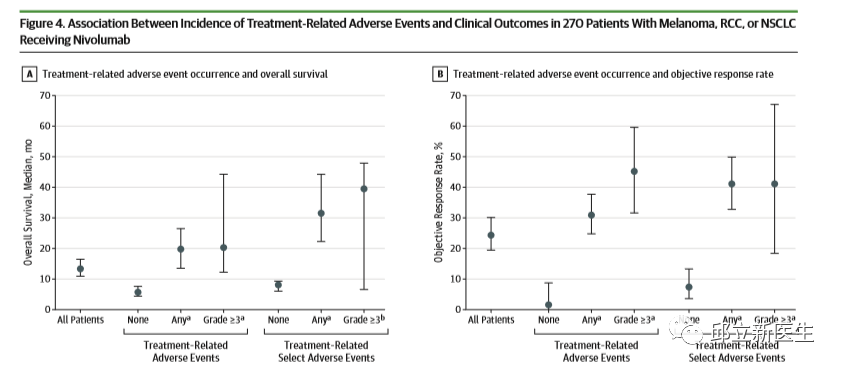 与没有出现治疗相关AE的患者相比,出现任何级别或3级及以上治疗相关AE的患者总生存期显著延长。