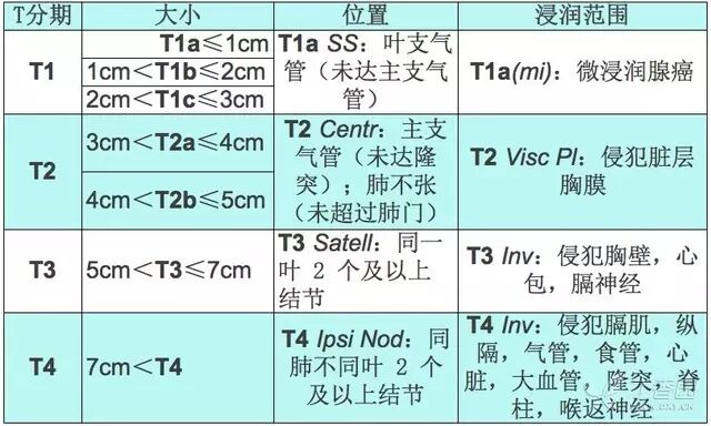 肺癌分期中,最复杂的要属 T 分期,它不是单纯的以大小或浸润深度去区分,而要从大小、位置、浸润范围三个维度去界定。